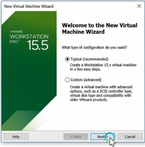 Select what type of configuration do you want? Click Typical (recommended), Create a workstation 15.x virtual machine in a few easy steps and click the next button.